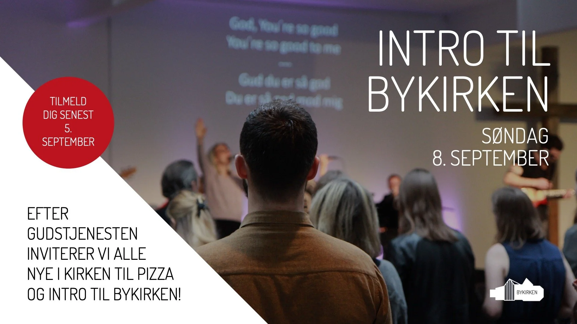 Er du ny i kirken - enten som medlem eller blot er begyndt at komme til vores gudstjenester eller i nogle af vores arbejdsgrene inden for det sidste års tid - inviteres du hermed til frokost og en kort intro til kirkens historie og arbejde søndag den 8. september efter gudstjenesten. Det vil være kirkens præst og evt. andre, der fortæller om kirken. Der vil også være mulighed for at stille spørgsmål. Af hensyn til bestilling af pizza bedes du give besked til kirkens kontor om, hvor mange du/I kommer senest den 5. september. Besked sendes på mail til kontor@bykirken.dk.